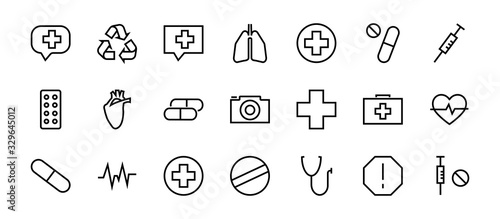 Simple Set of Medicine, Pills Related Vector Line Icons. Contains icons such as Pain, Syringe, tablet and more. Editable stroke. 480x480 pixels perfect, on a white background