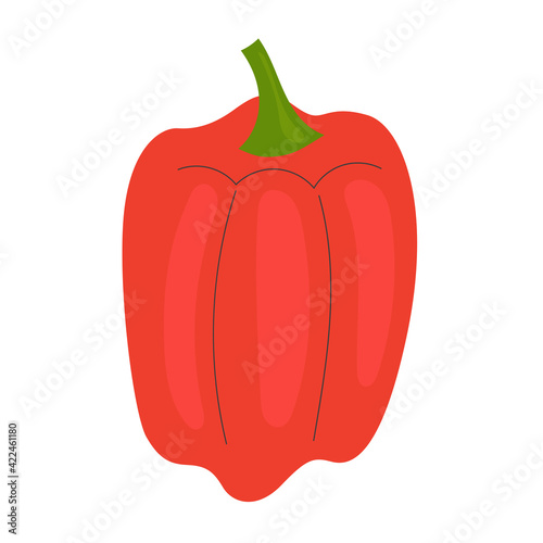 Simple single sweet paprika, red pepper. Healthy food, vitamins, vegetables. Illustration in flat style
