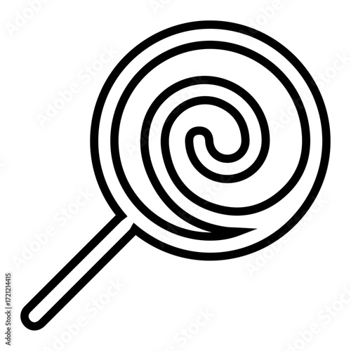 Simple Spiral Lollipop Vector Icon: A Minimalist Black Line Art Illustration of a Swirly Candy on a Stick for Sweet Treats and Dessert Themes