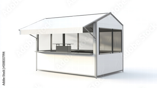 Simple Stall Structure: The image showcases a pristine, simple stall structure with a modern aesthetic. It stands ready for use. It's an excellent representation of architecture and design.