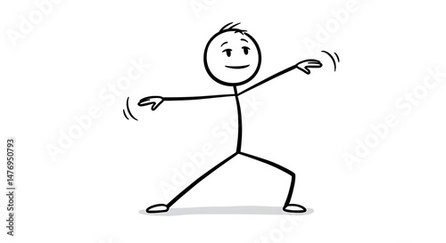 Simple stick figure in a balanced posture expressing serene calmness and mindfulness