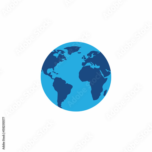 Simple stylized world map globe icon, blue continents, light blue background.
