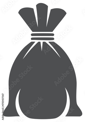 Simple tied sack or pouch icon in gray. Bag silhouette on white background.