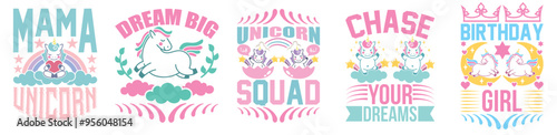 Simple Unicorn Tshirt Design Bundle Calligraphic Lettering, Hand Lettering Pack Vector Illustration for Presentation, Social Media Post, Advertisement