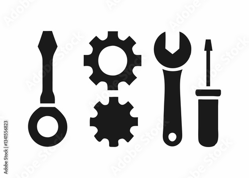 Simple Vector Illustration of Tools and Gears for Repair and Maintenance