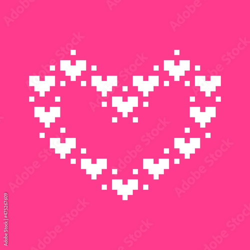 simple vector pixel art sign of cartoon minimalistic cute white heart shape made of hearts