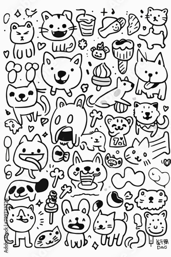 Simple wallpaper of dogs and cats. Vector linear seamless pattern. For postcard covers, etc