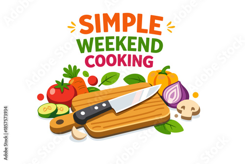 Simple weekend cooking: fresh vegetables and kitchen knife on cutting board