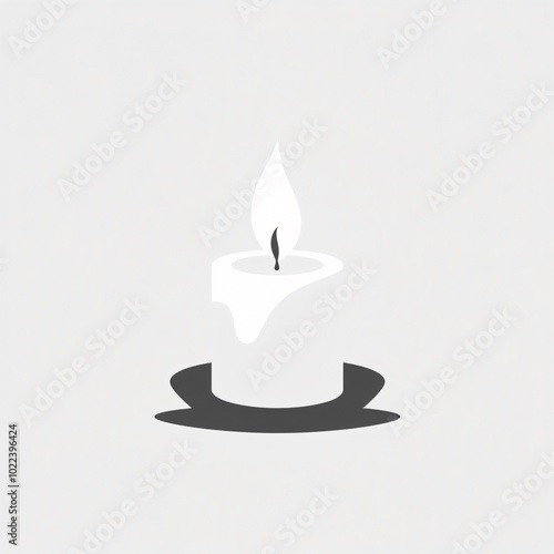 Simple white candle with a soft flame on a minimal background creating a peaceful atmosphere in a dimly lit room