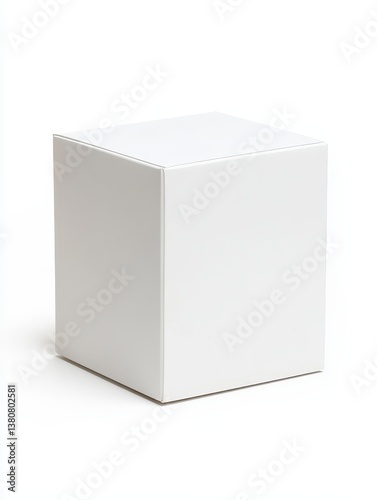 Simple white cardboard box on white background. Studio shot, clean and minimal.