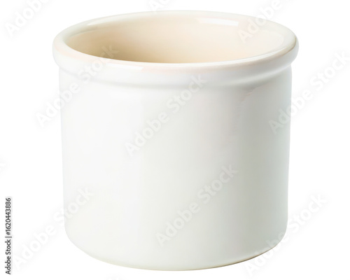 Simple white ceramic crock for kitchen utensil storage on a transparent background