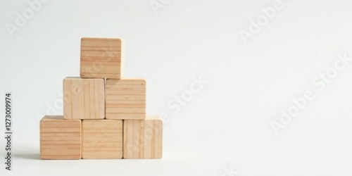 Simple Wooden Blocks Arranged in a Pyramid Shape on a Plain Background