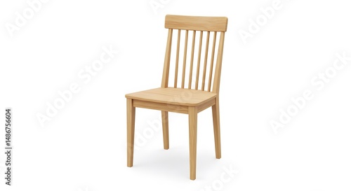 Simple Wooden Dining Chair on White Background