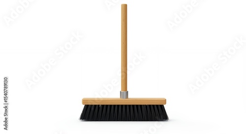 Simple wooden handle broom against white background