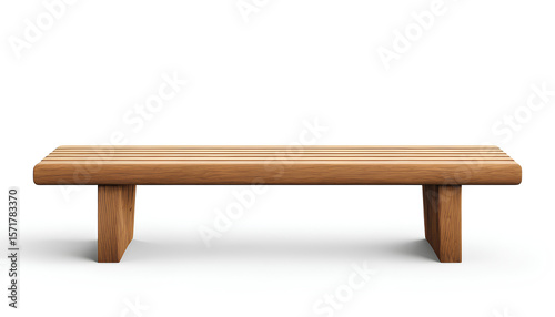 Simple Wooden Seating Bench on White Background