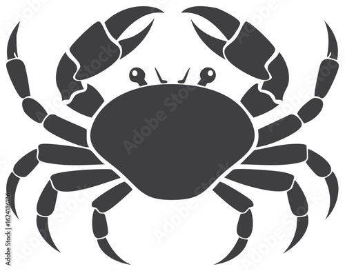 Simplified Dark Gray Crab with Claws Silhouette Graphic for Seafood Menus or Nautical Designs
