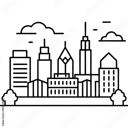 Simplistic Modern City Skyline Vector with Minimal Landmark Details