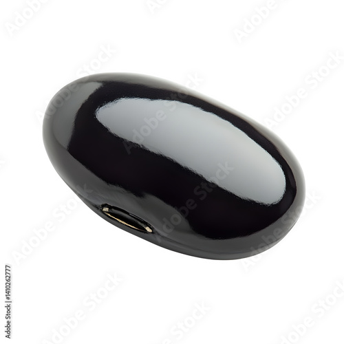 Single black bean with glossy finish, oval shape, isolated on white