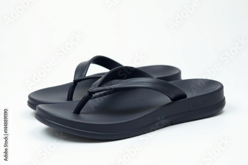 Single black flip-flop isolated on pure white background, isolated, fashion, element