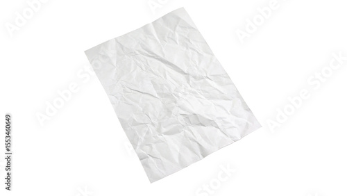 single blank white crumpled and creased paper isolated on a transparent background mockup