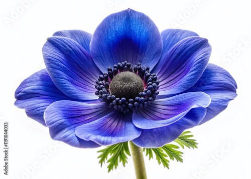 Single Blue Anemone Flower Isolated on White Background - High-Resolution Aerial Stock Photo