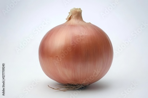Single Brown Onion on White Background - A single, ripe brown onion sits on a bright white background. It's a perfect, whole onion