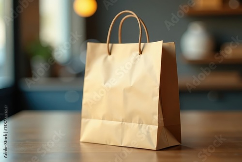 Single brown paper shopping bag, handles visible , paper bag, shopping, isolated