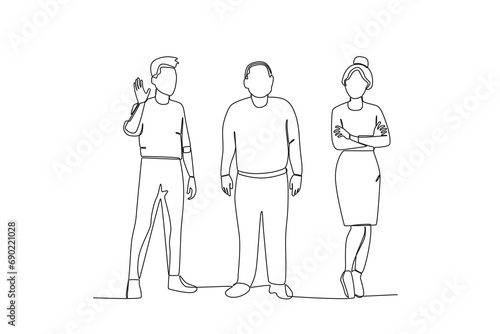 Single continuous line drawing of a group of people in style. outdoor crowd concept, vector illustration of male and female crowd