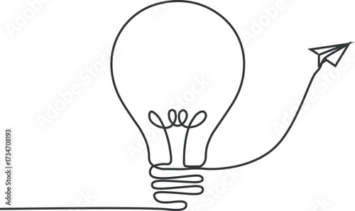 Single continuous one line art idea light bulb. Creative solution teamwork lamp concept minimal line art design, light sketch outline drawing illustration Free Vector