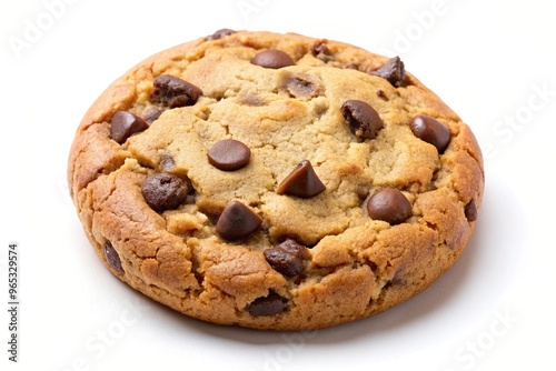 single cookie, white background, crumbs, cookie, calorie, treat, butter, bakery, baked, close-up, homemade, symmetrical, One chocolate chip cookie isolated on white background symmetrical