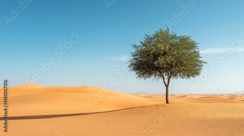 Single Desert Tree Golden Sands Sunny Day Landscape Scenic View Tranquil Nature Scene Peaceful Solitude Arid Environment Hot Climate Summer Day Natural Beauty Golden Hour