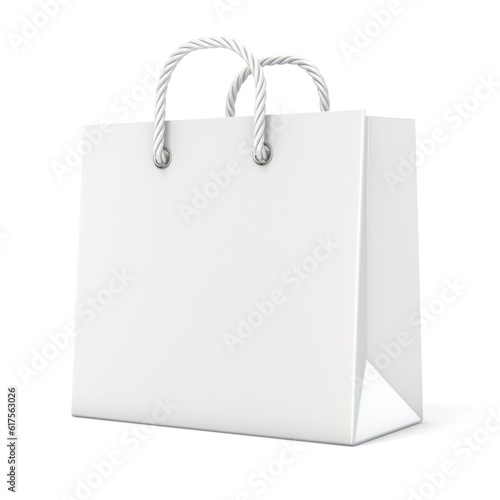 Single, empty, blank shopping bag. 3D render illustration isolated on white background