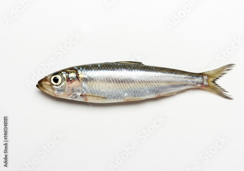 Single fresh sardine on a white background for culinary use