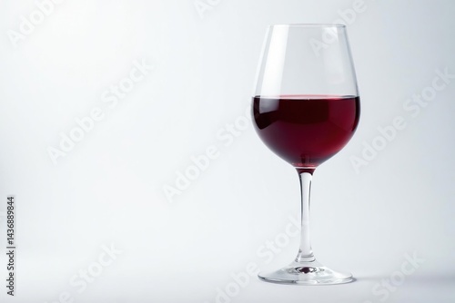 Single glass of ruby red wine, bright white setting, liquid, ruby