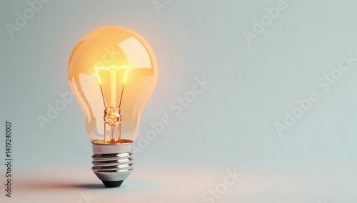 Single glowing lightbulb isolated on white background, bright idea, energy