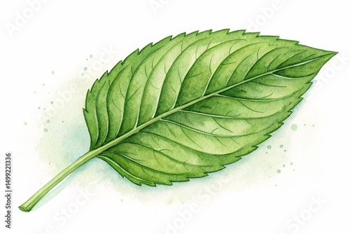 Single green leaf matcha, Hand Drawn Illustration Watercolor paintin.
