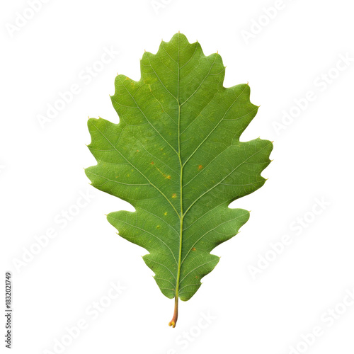 Single Green Oak Leaf with Serrated Edges Detailed Veins and Transparent Background