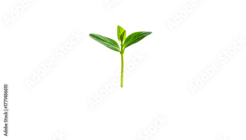 Single green sprout growing, symbol of hope and development, isolated on transparent background.