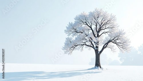 Single isolated tree on a snowy white background, bare branches, forest, frost