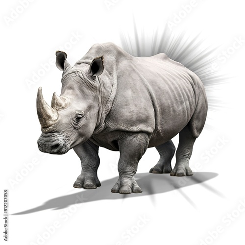 Single Large Rhinoceros Isolated on White