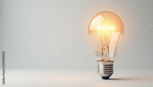 Single lightbulb against pure white background, discovery, knowledge, eureka