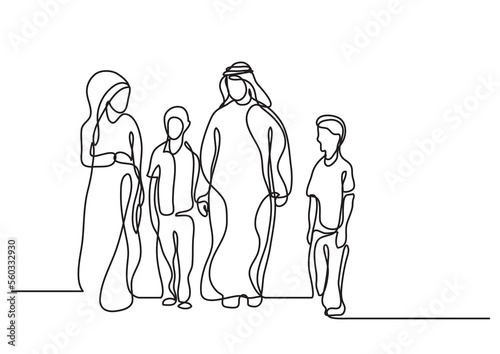 single line drawing traditional arab family - PNG image with transparent background