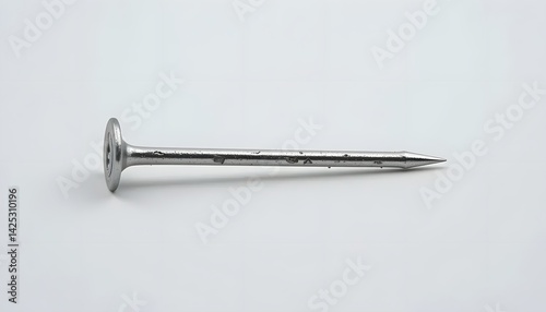 Single Metal Nail on White Background