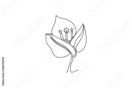 Single one line drawing beauty fresh bougainville for home wall decor art. Printable decorative poster thorny vine flower for greeting card ornament. Continuous line design graphic vector illustration