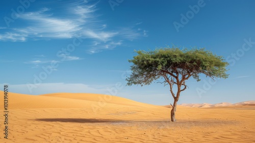 Single, one tree in the desert. Illustration generated by ai