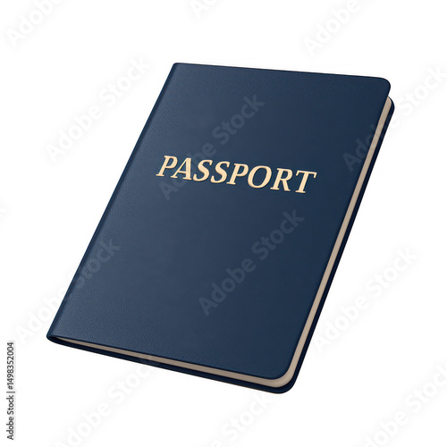 Single passport with gold text on deep blue cover, isolated on transparent background