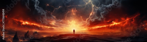 Single person facing an explosive cosmic event.