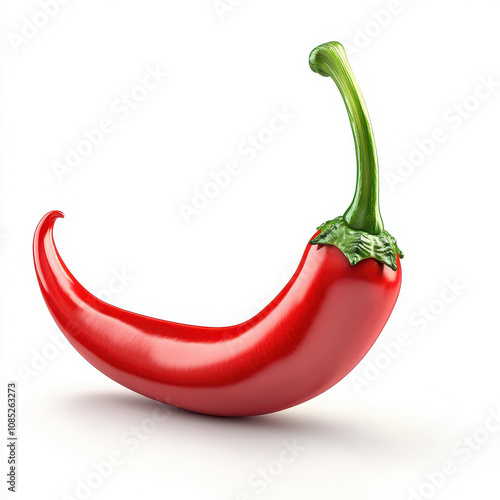 single red chili pepper, sharp and vibrant, showcasing its glossy skin and green stem, perfect for culinary use or decoration