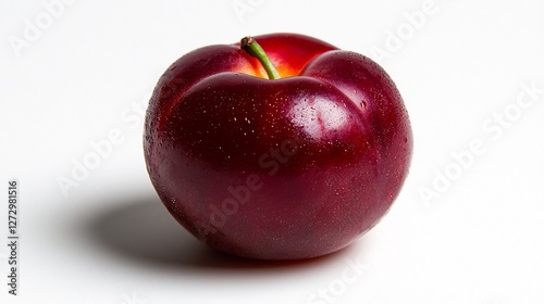 Single Red Nectarine With Slight Blush on Its Skin Isolated on White Background