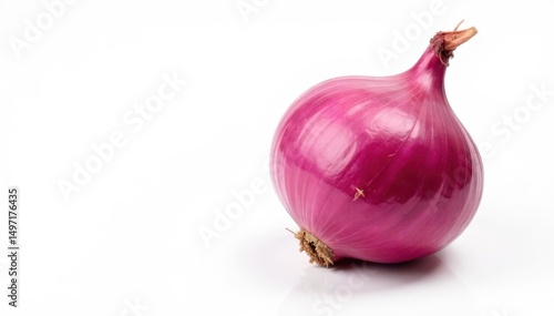 Single red onion, vibrant color, crisp texture, clean white background , macro, purple, photography